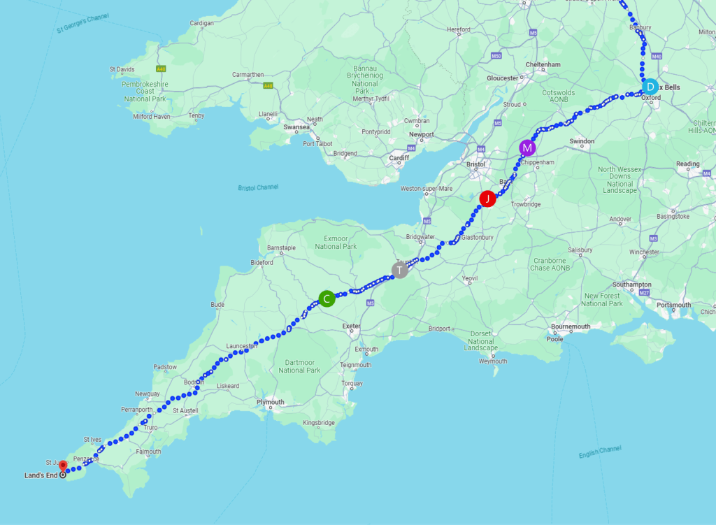 And some screenshots of where each of us are located. Chris and Kev in beautiful Scotland, Dave by the pub (overshot The Six Bells), Matty in a country lane, Johnny next to the most English little post box, and Tom and Carlin in two very different Devon country paths.