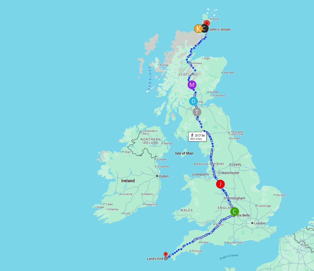 Sixty-seven days remaining and the end is near. Matt, Tom, and I are cutting it close to reaching John O’ Groats, while Carlin and Johnny will be looking to achieve their own personal bests. Here’s the per-days required.