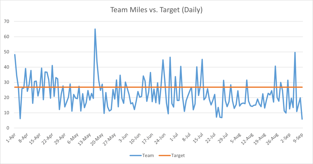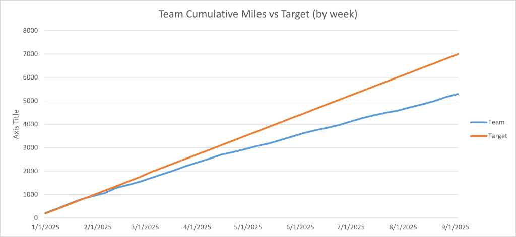 Good news and bad news this week. The good news is that we have now passed half way and we’re putting in some cracking milage. Well done.