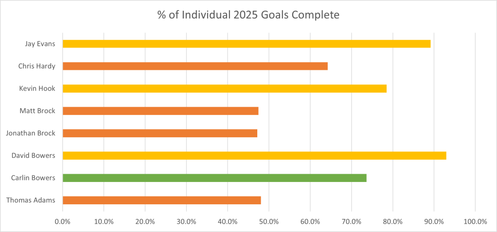 | Name | 2025 Goal | Completed | 2025 Remaining | 2025 % Complete | 2025 miles per day required |