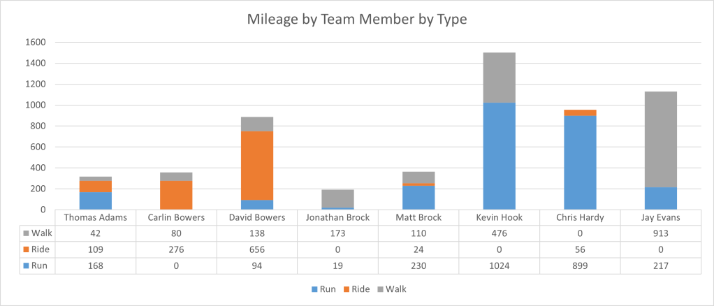 What a week! We closed the gap on our target for first time in months, in no small part down to Johnny E’s big walking numbers. Bravo!