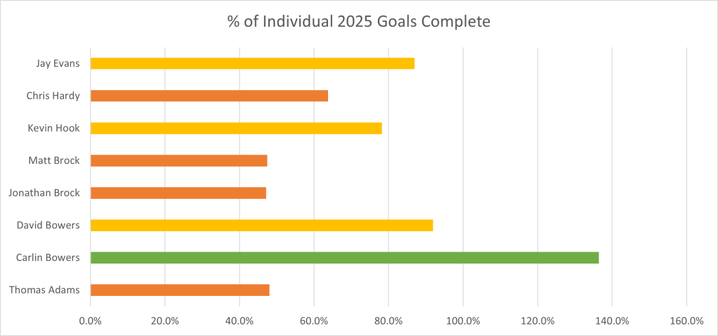 | Name | 2025 Goal | Completed | 2025 Remaining | 2025 % Complete | 2025 miles per day required |